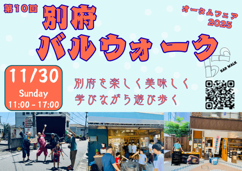 別府駅を中心に楽しく歩き、学びながら楽しみ、道と人を繋げ歩いていく『街歩きイベント』の『別府バルウォーク』を11月30日(土) 11:00~17:00で開催します。